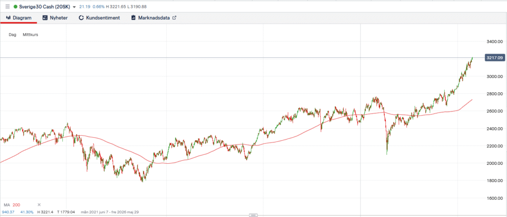 MA200 är en släpande indikator. Det betyder att den berättar vad som har hänt, inte nödvändigtvis vad som ska hända imorgon. Den fungerar bäst i marknader med tydliga trender och kan ge ”falska signaler” när börsen går sidleds.
